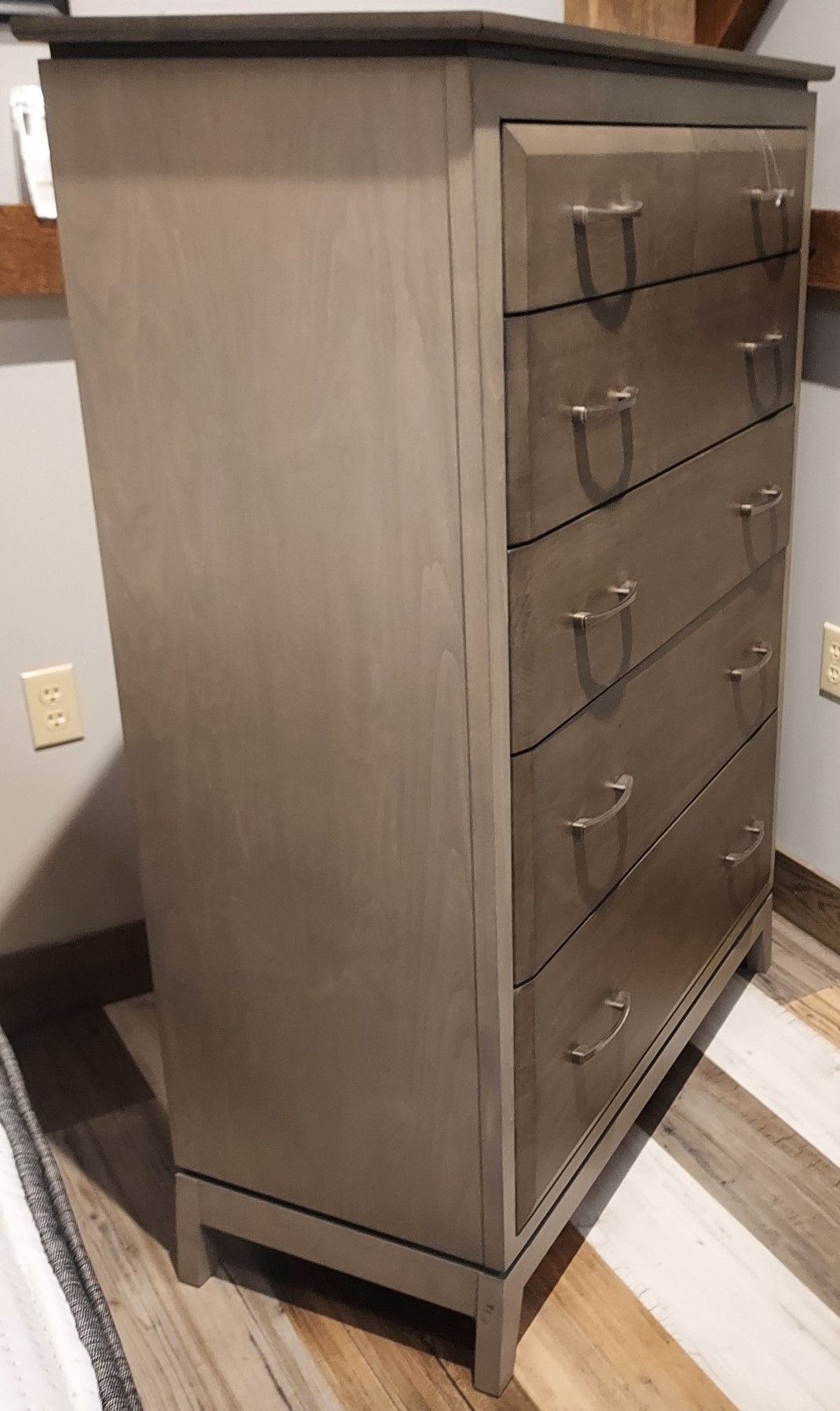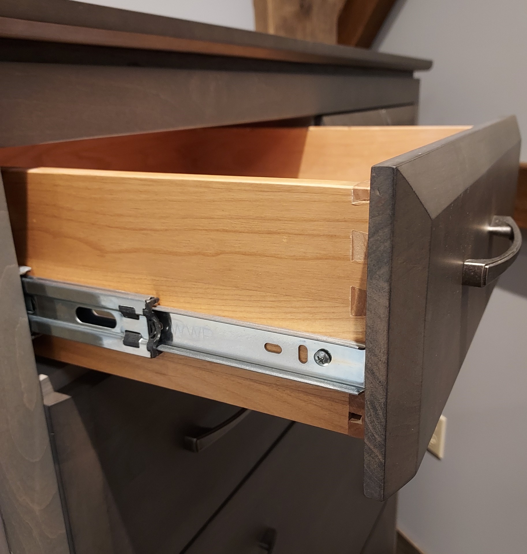 A perfect fusion of contemporary grace and urban elegance emanates from the stylish design of this collection. The subtle contrasting colors of the Astoria Sky finish are beautiful. The exquisitely crafted Ellison boasts English dovetail drawer construction and full extension metal ball-bearing drawer slides for easy access to the spacious drawers. A precisely engineered 45-degree miter face frame seamlessly surrounds spacious inset drawers. Antique Pewter drawer pulls add an appealing accent. Made from certified sustainable American Alder hardwood.