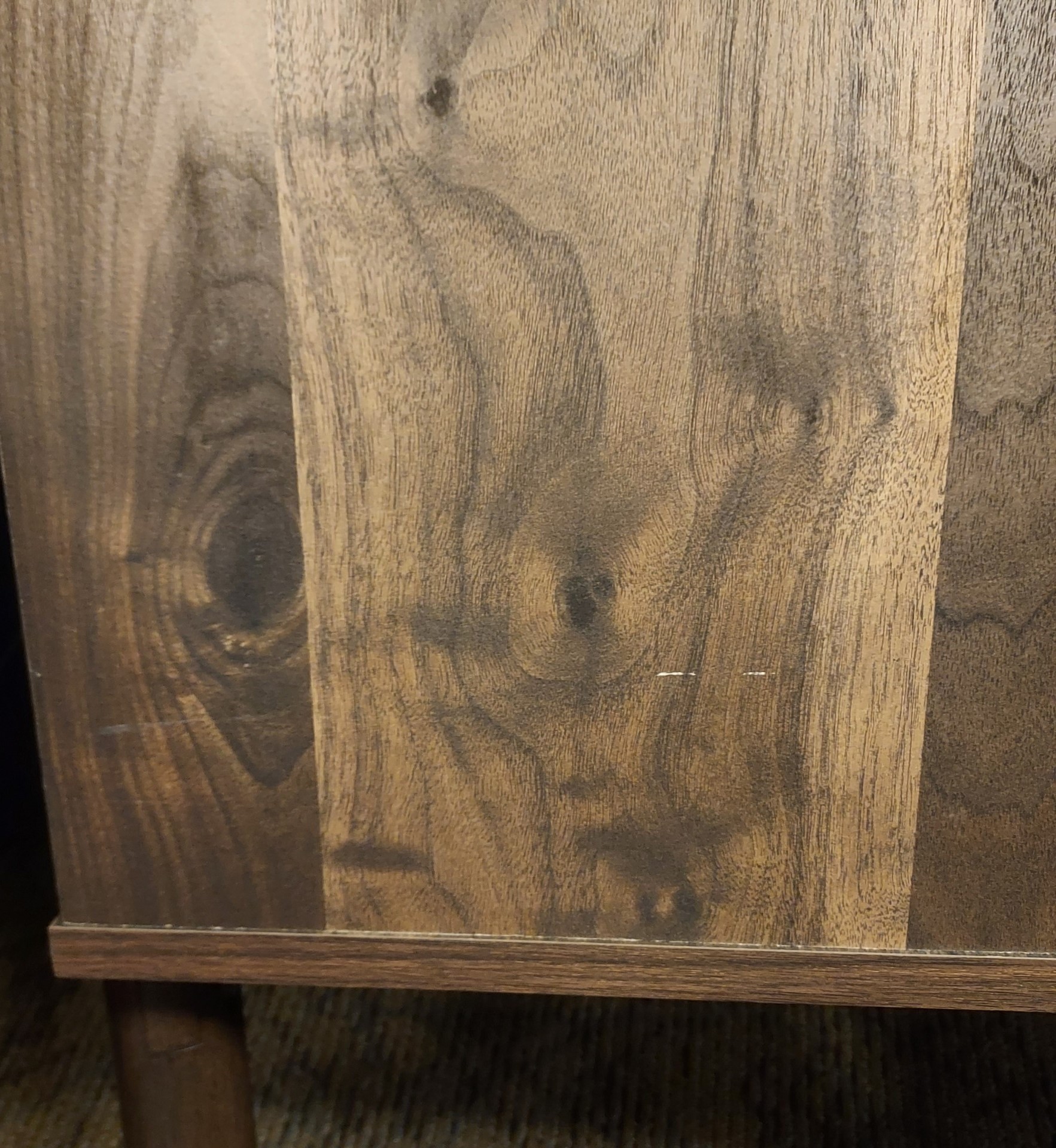 • Rich brown finish over replicated walnut wood grain with authentic touch